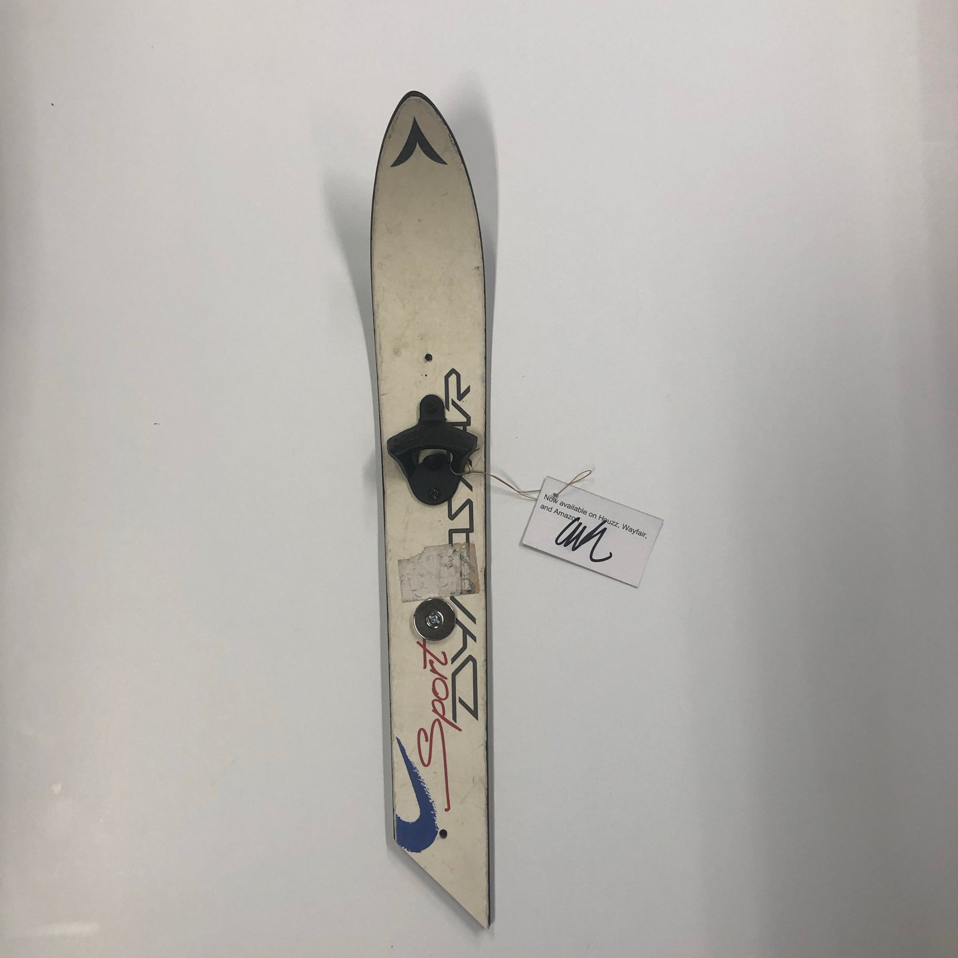 Newly Designed Ski Bottle Opener with magnetic bottle cap catch!! Two holes provided for wall mounting!! 22” tall